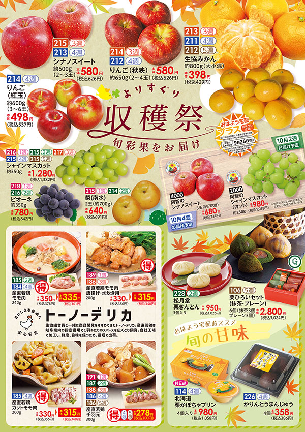 ・ご注文いただいた商品の点数、金額はお届け週の利用明細に記載されます。